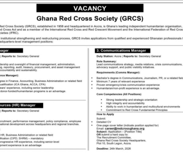 Ghana Red Cross Society (GRCS)The Ghana Red Cross Society (GRCS), established in 1958 and headquartered…