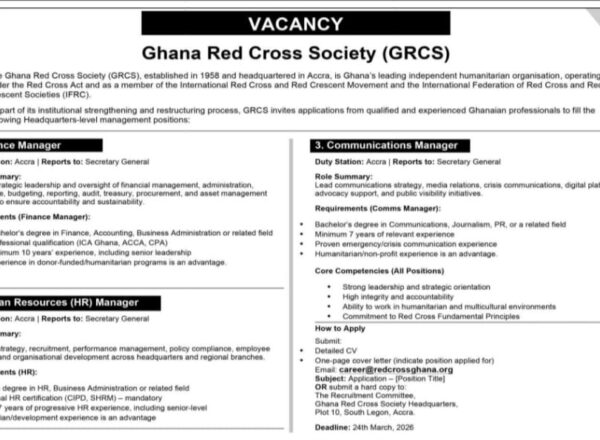 Ghana Red Cross Society (GRCS)The Ghana Red Cross Society (GRCS), established in 1958 and headquartered…
